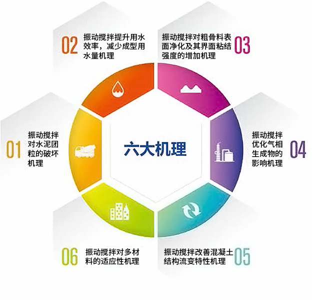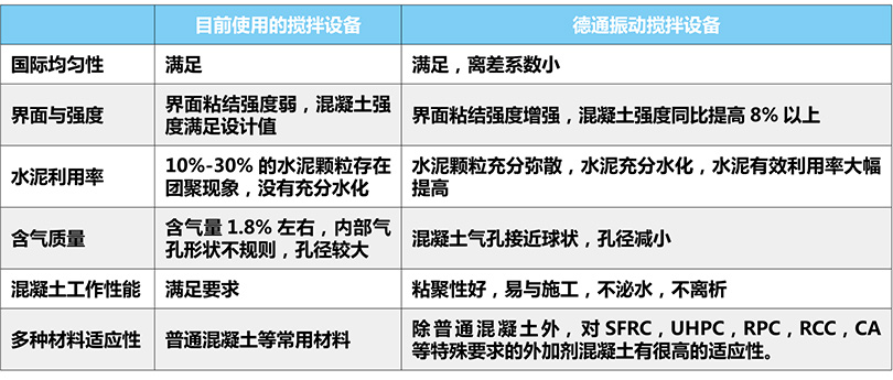 試驗數(shù)據(jù)表明:在同等條件下,振動攪拌與傳統(tǒng)的強制式攪拌相比,當水泥用量不變時,混凝土強度提高8%以上;當混凝土強度不變時,大約可節(jié)約水泥5%~25%;攪拌時間可縮短20%以上,節(jié)能約30%。振動攪拌從微觀上改善了混合料的固液氣 3 相結(jié)構(gòu),提高了混凝土性能 。
