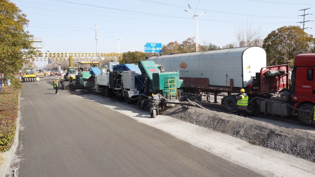 ● 銑刨(碎石)-拌合-攤鋪-碾壓,連續(xù)式流水作業(yè),再生施工效率高,開放交通快